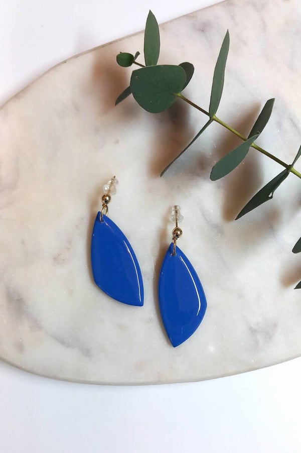Deze oorbellen zijn voorzien van een resin glanslaag.