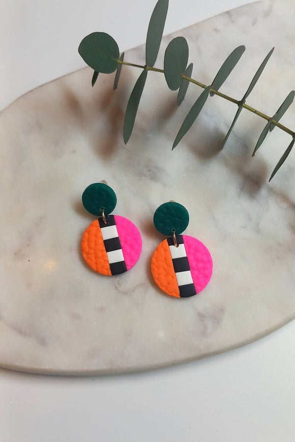 Deze oorbellen hebben een leer textuur en zijn aan de achterkant afgewerkt met een resin glanslaag.