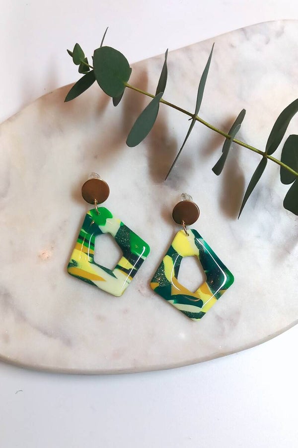 Deze oorbellen zijn voorzien van een resin glanslaag.