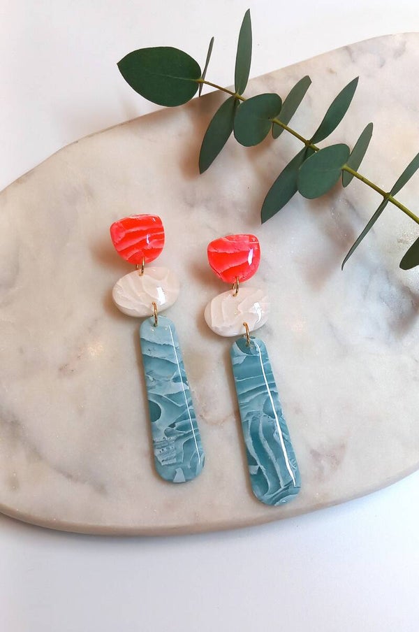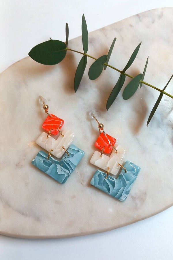 Deze oorbellen hebben een edelsteen effect en zijn voorzien van een resin glanslaag.