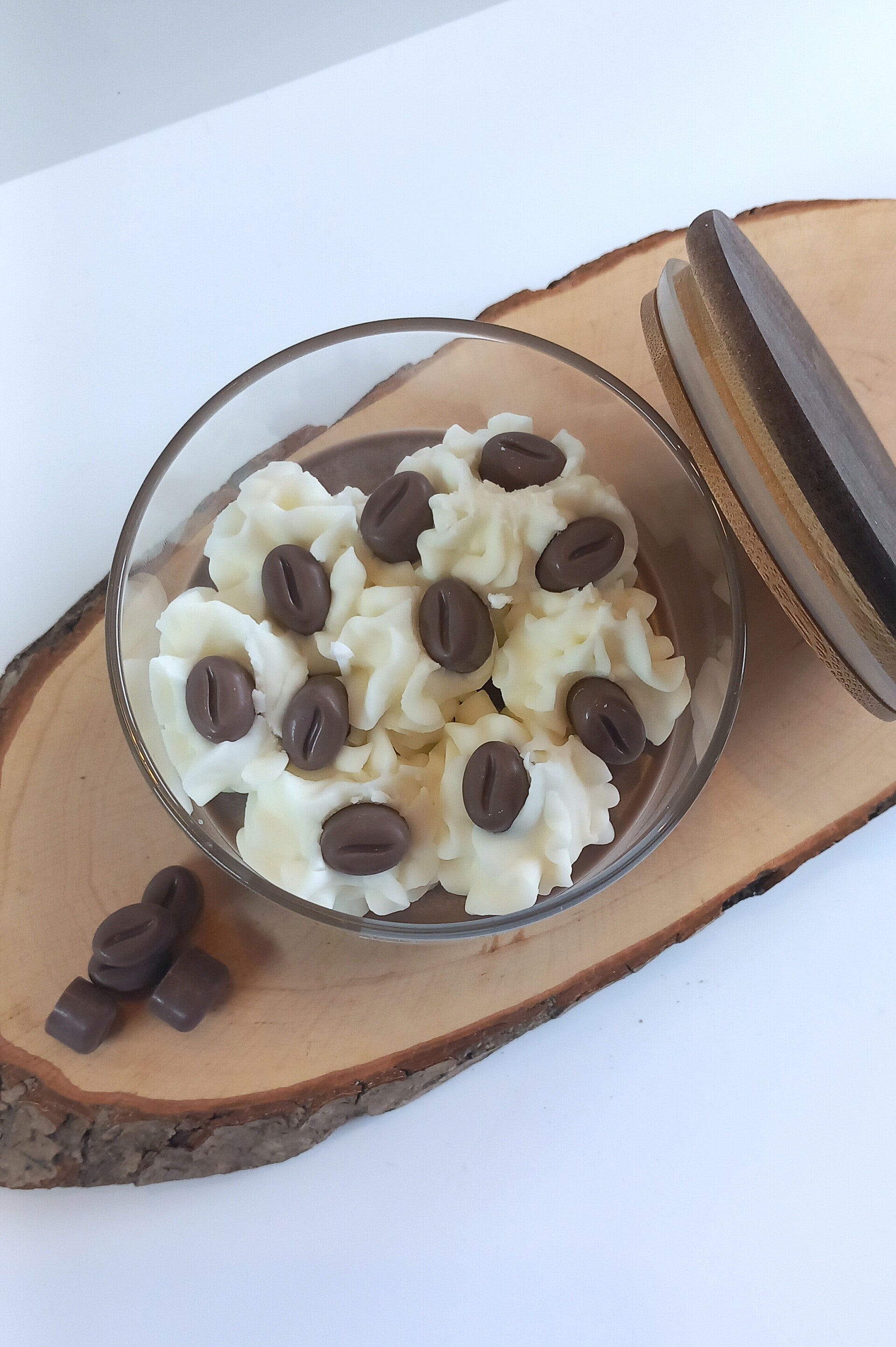 Maat glazen potje inclusief houten deksel: 10x8,5cm.
