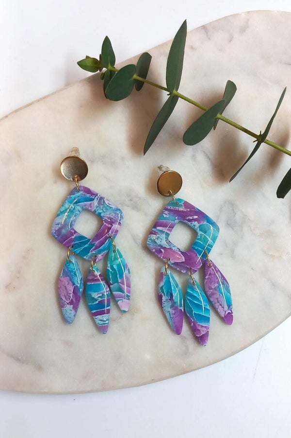 Deze oorbellen zijn voorzien van een resin glanslaag.