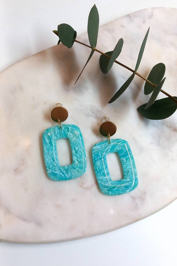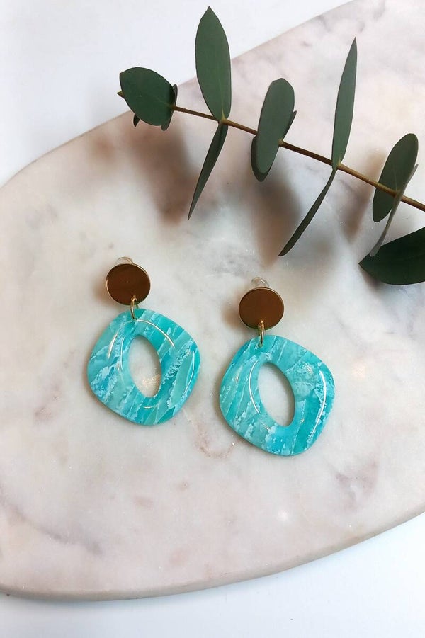 Deze oorbellen zijn voorzien van een resin glanslaag.