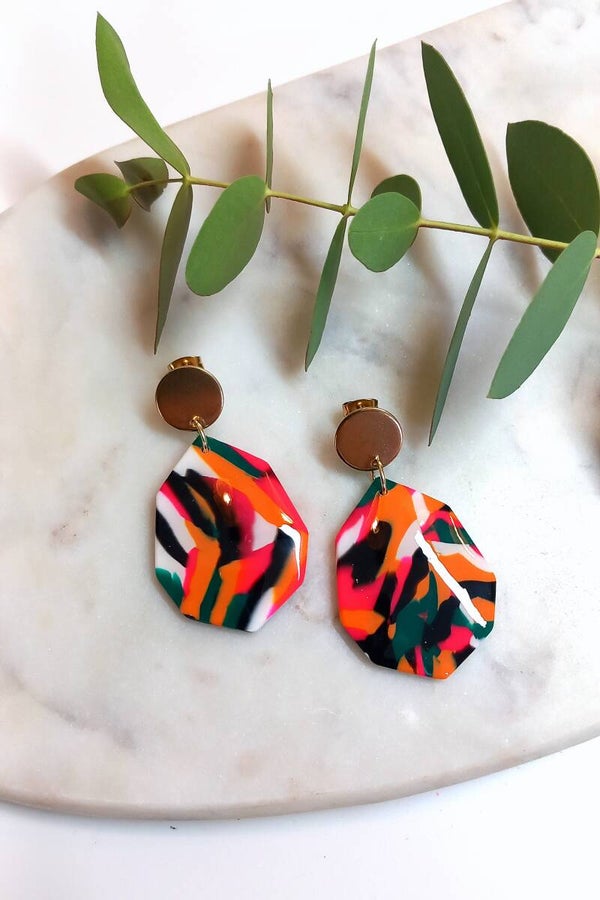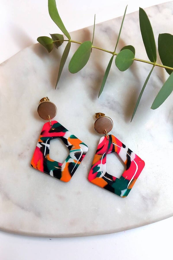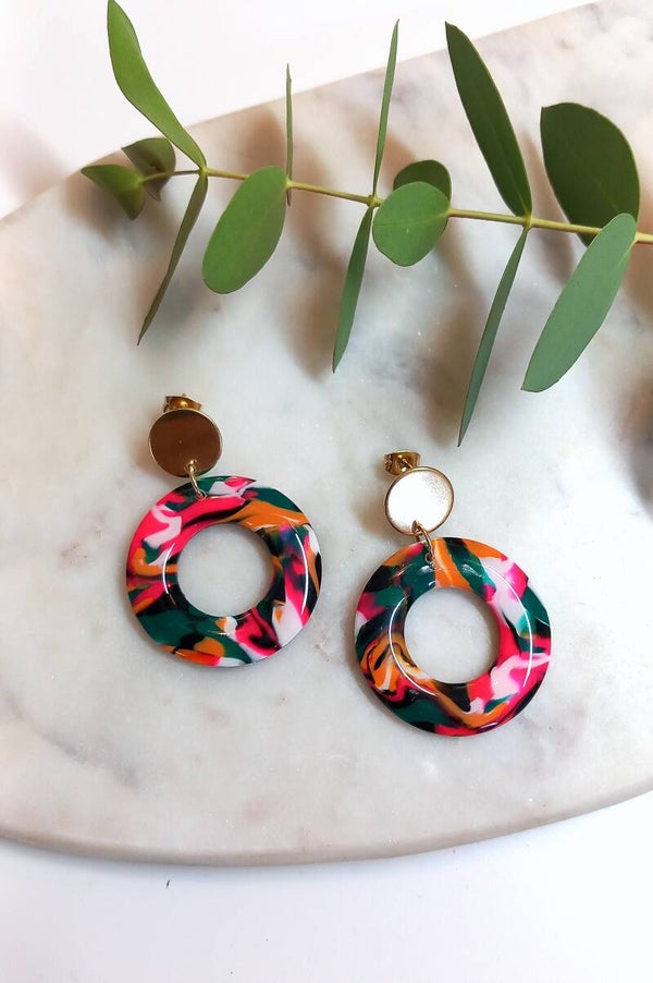 Deze oorbellen zijn voorzien van een resin glanslaag.