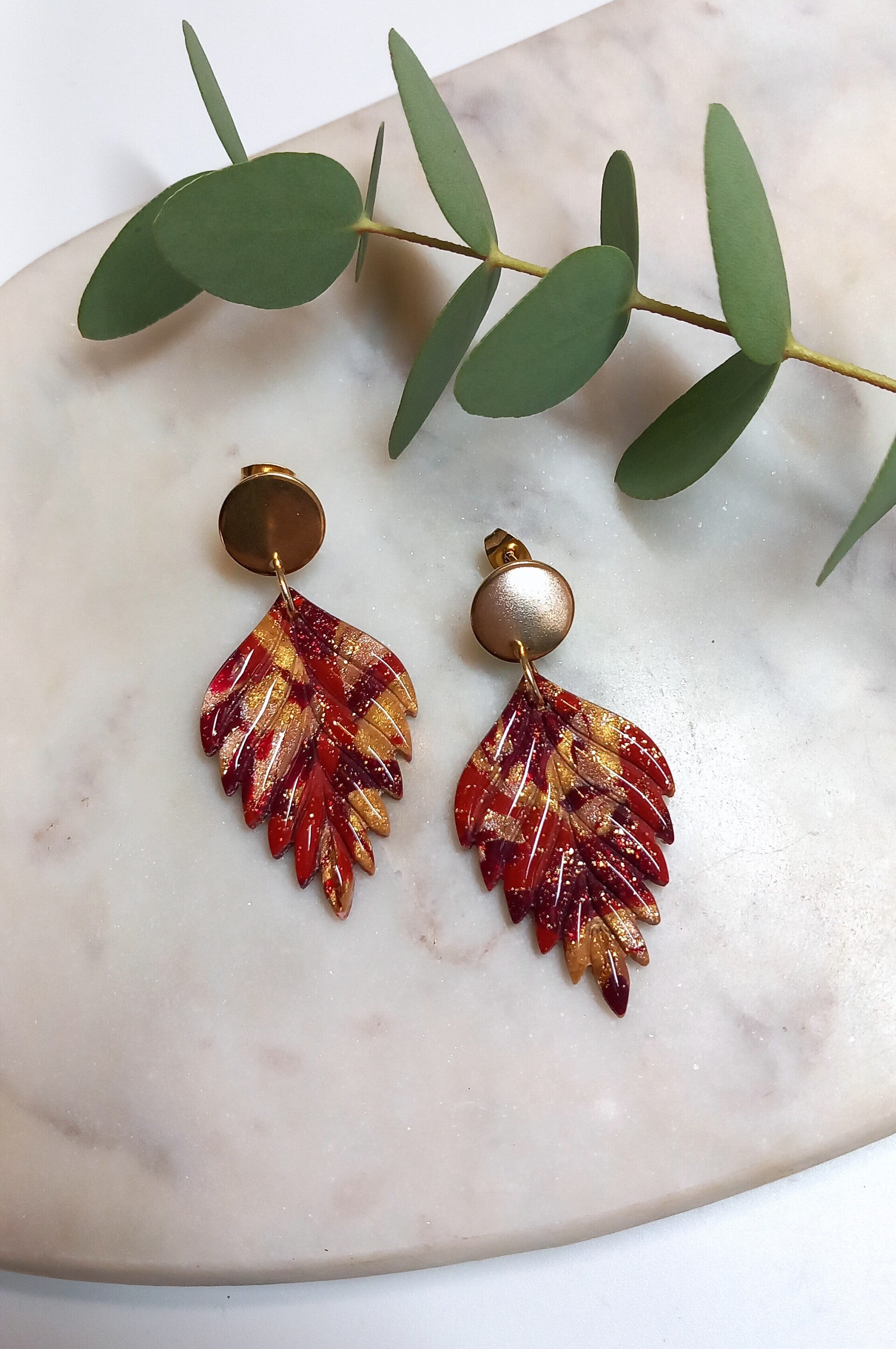 Deze oorbellen zijn voorzien van bladgoud en een resin glans laag.