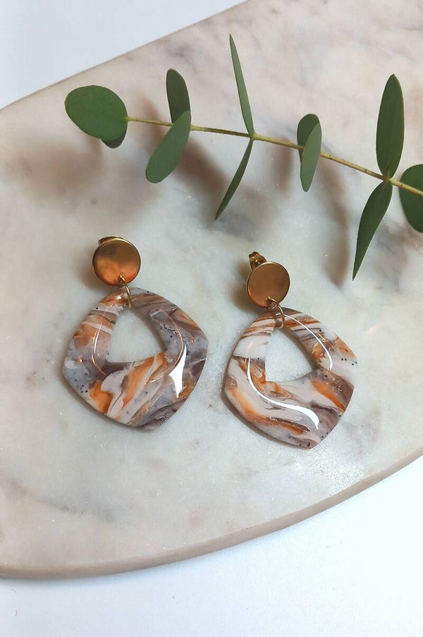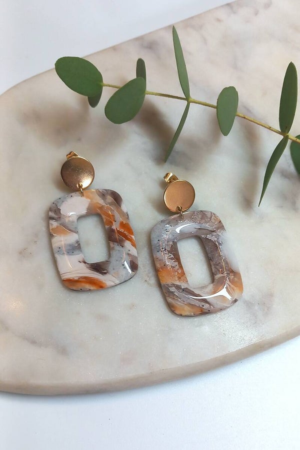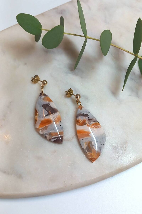 Deze oorbellen zijn voorzien van een resin glanslaag.