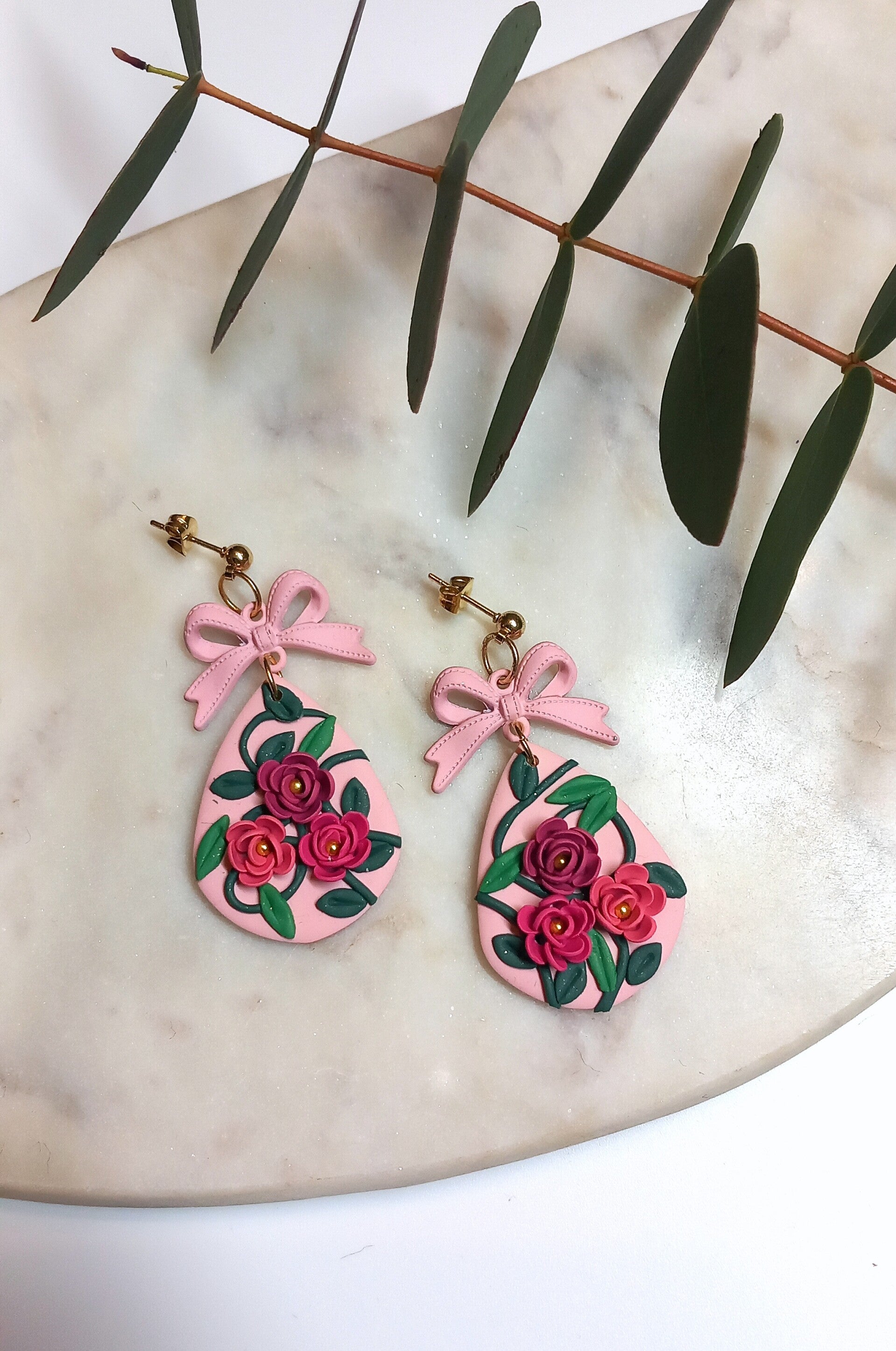Deze oorbellen hebben handgemaakte 3D bloemetjes. Blaadje voor blaadje zijn deze in elkaar gezet tot een bloemetje.