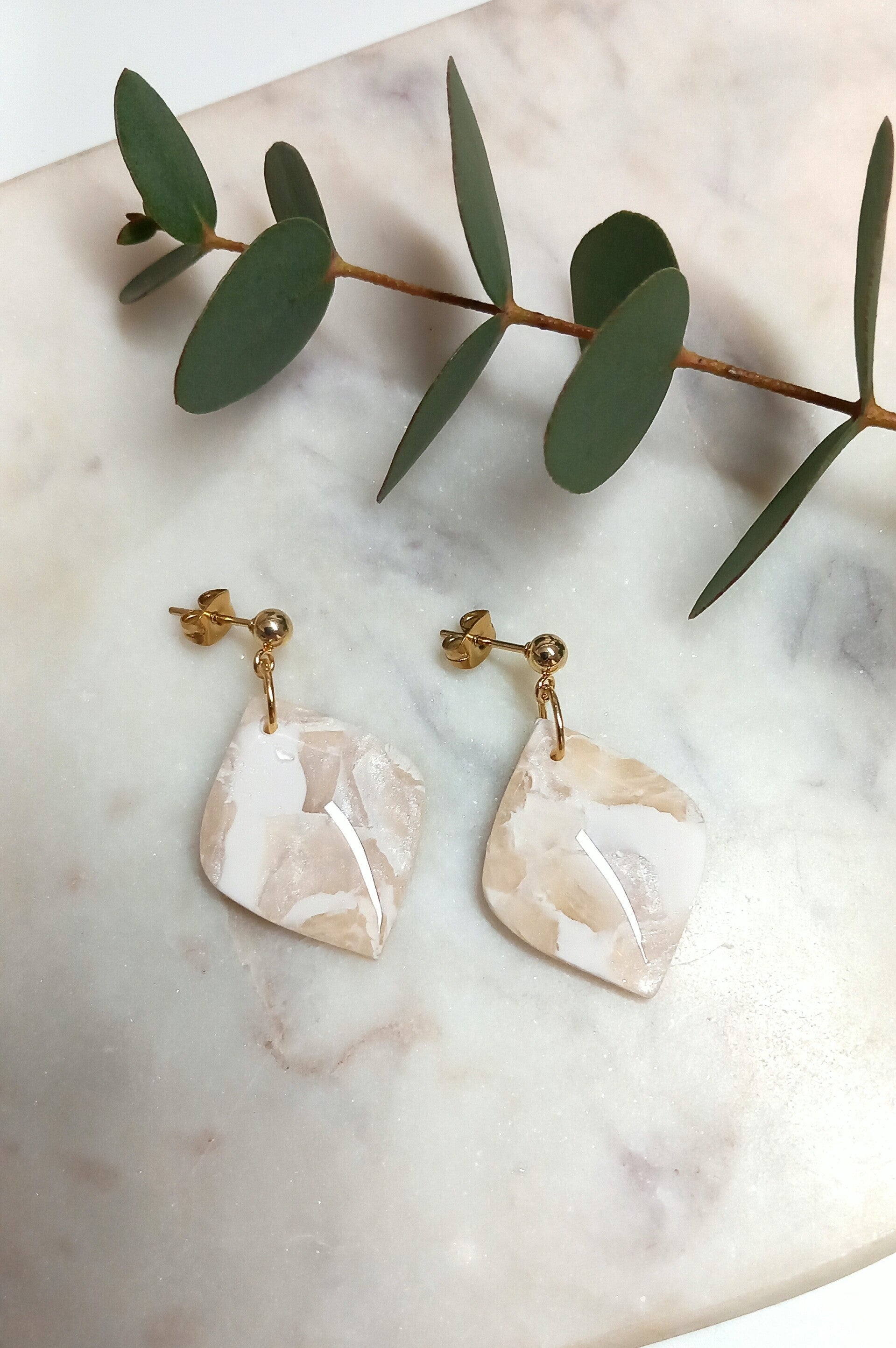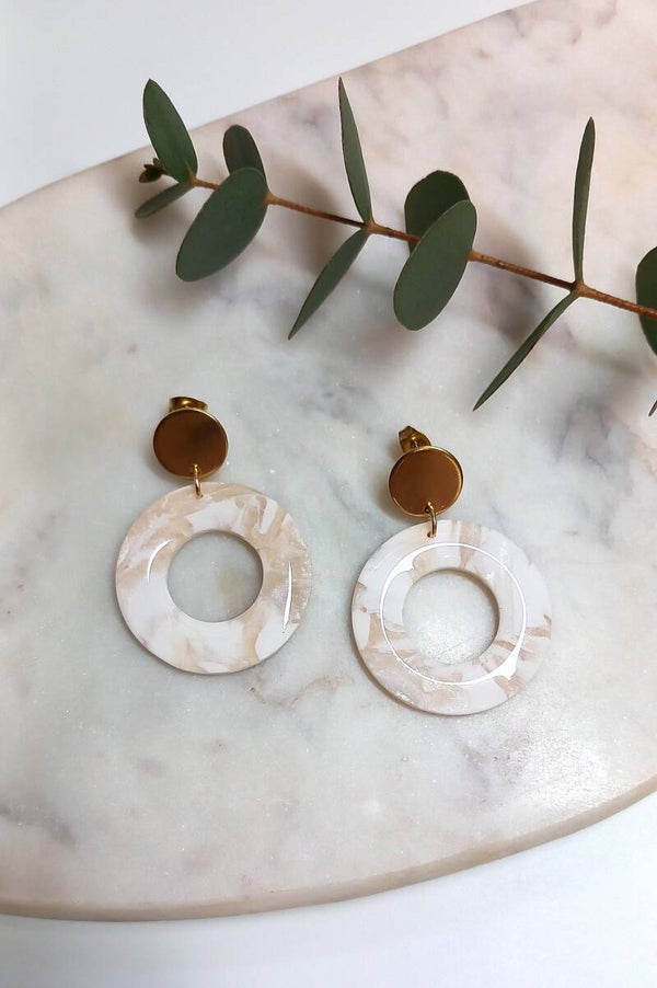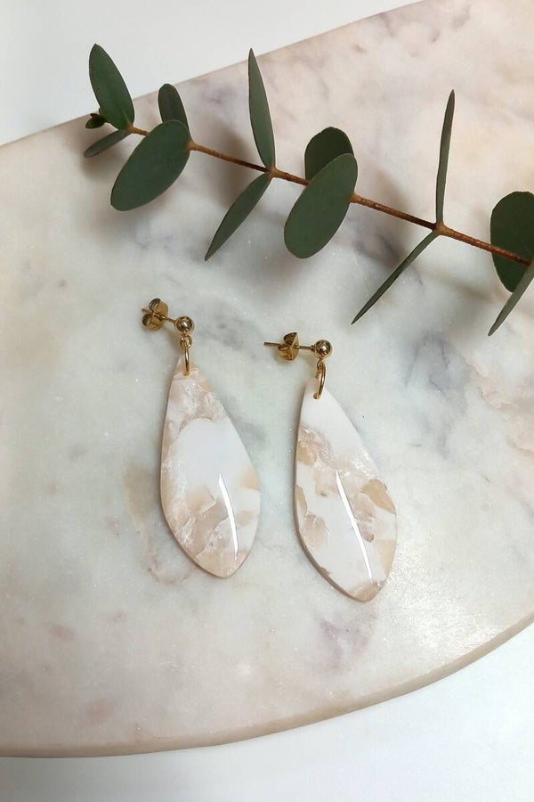 Deze oorbellen zijn voorzien van een resin glanslaag.