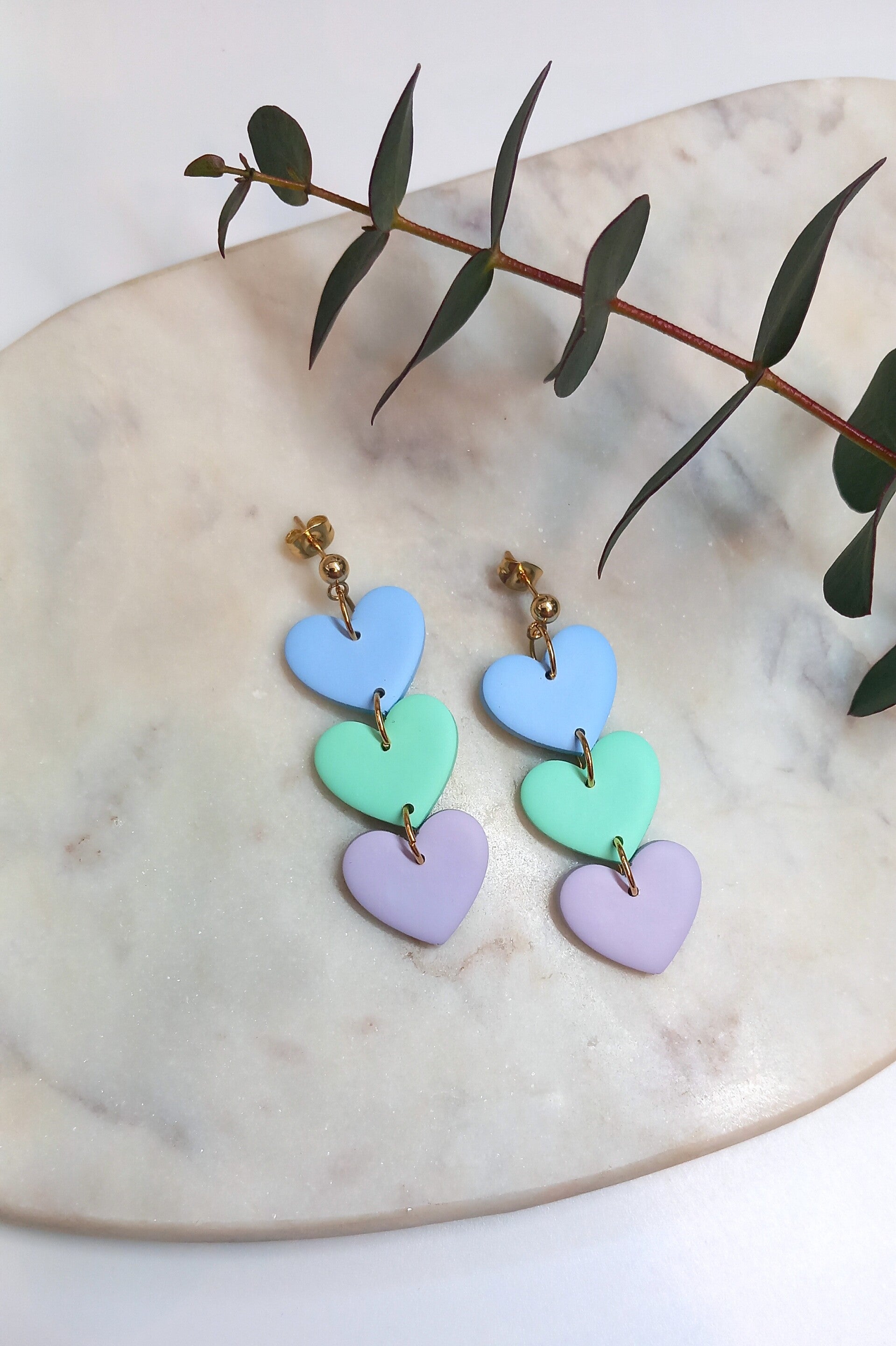 Materiaal: Polymeerklei, RVS oorstekers.
