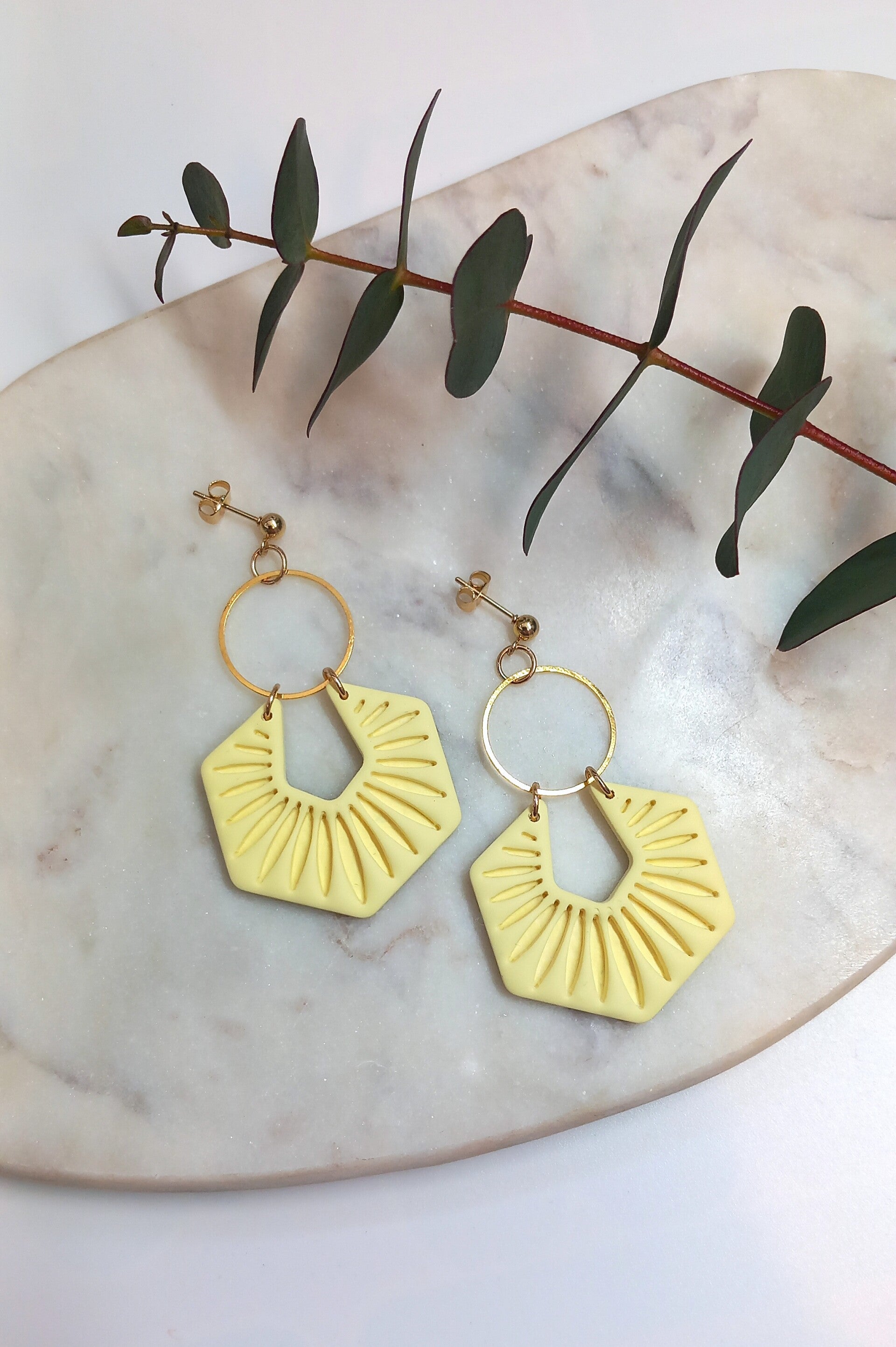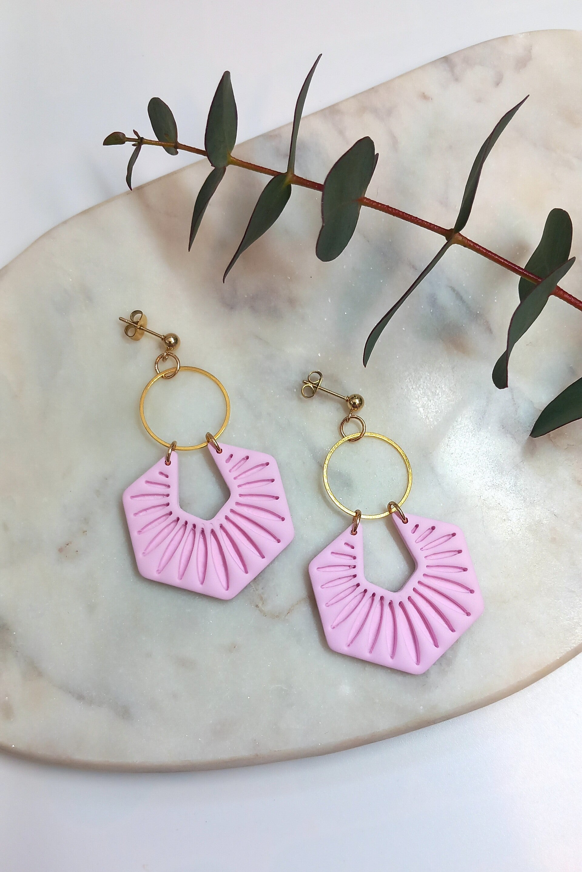 Materiaal: Polymeerklei, RVS oorstekers.