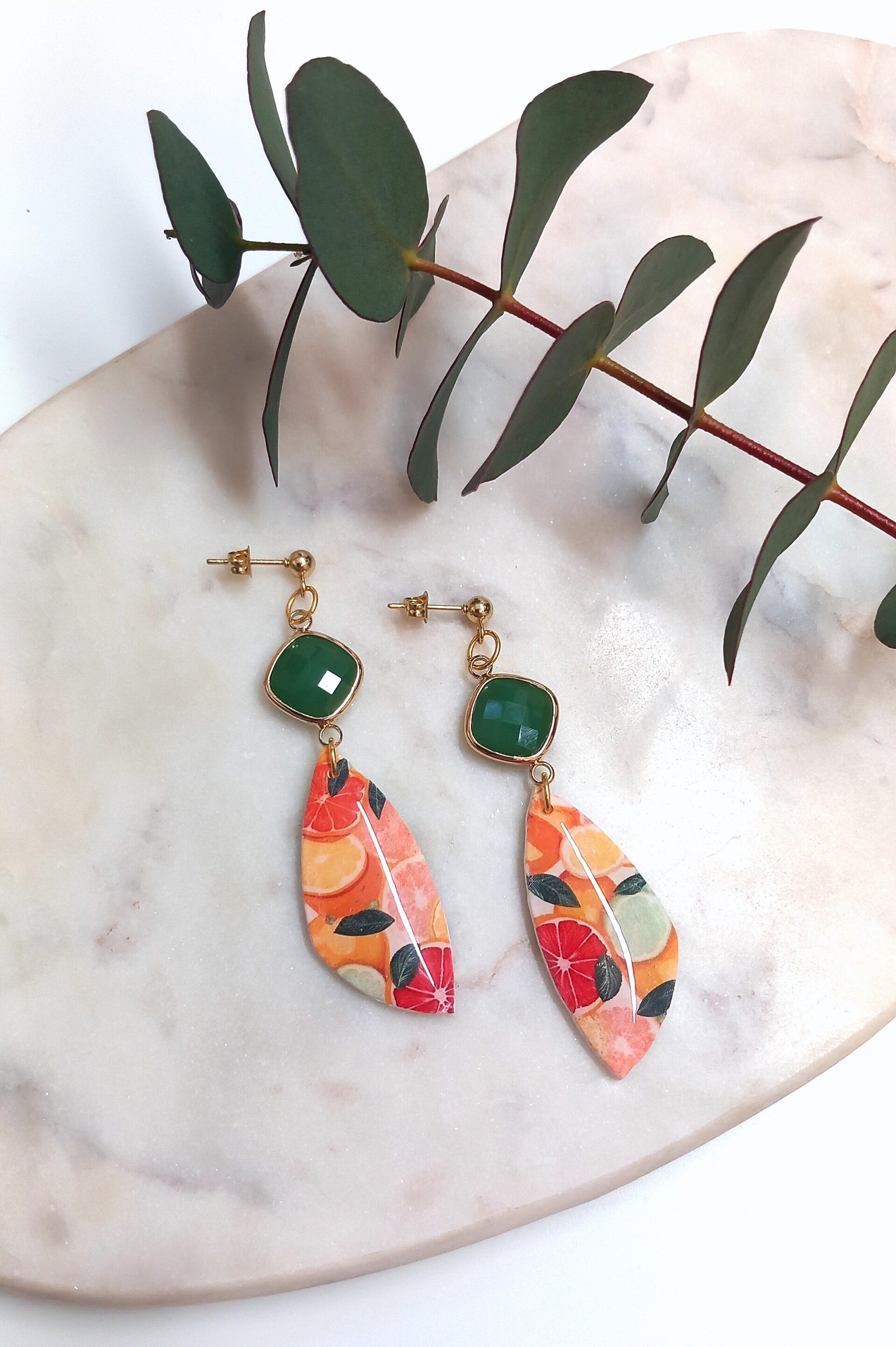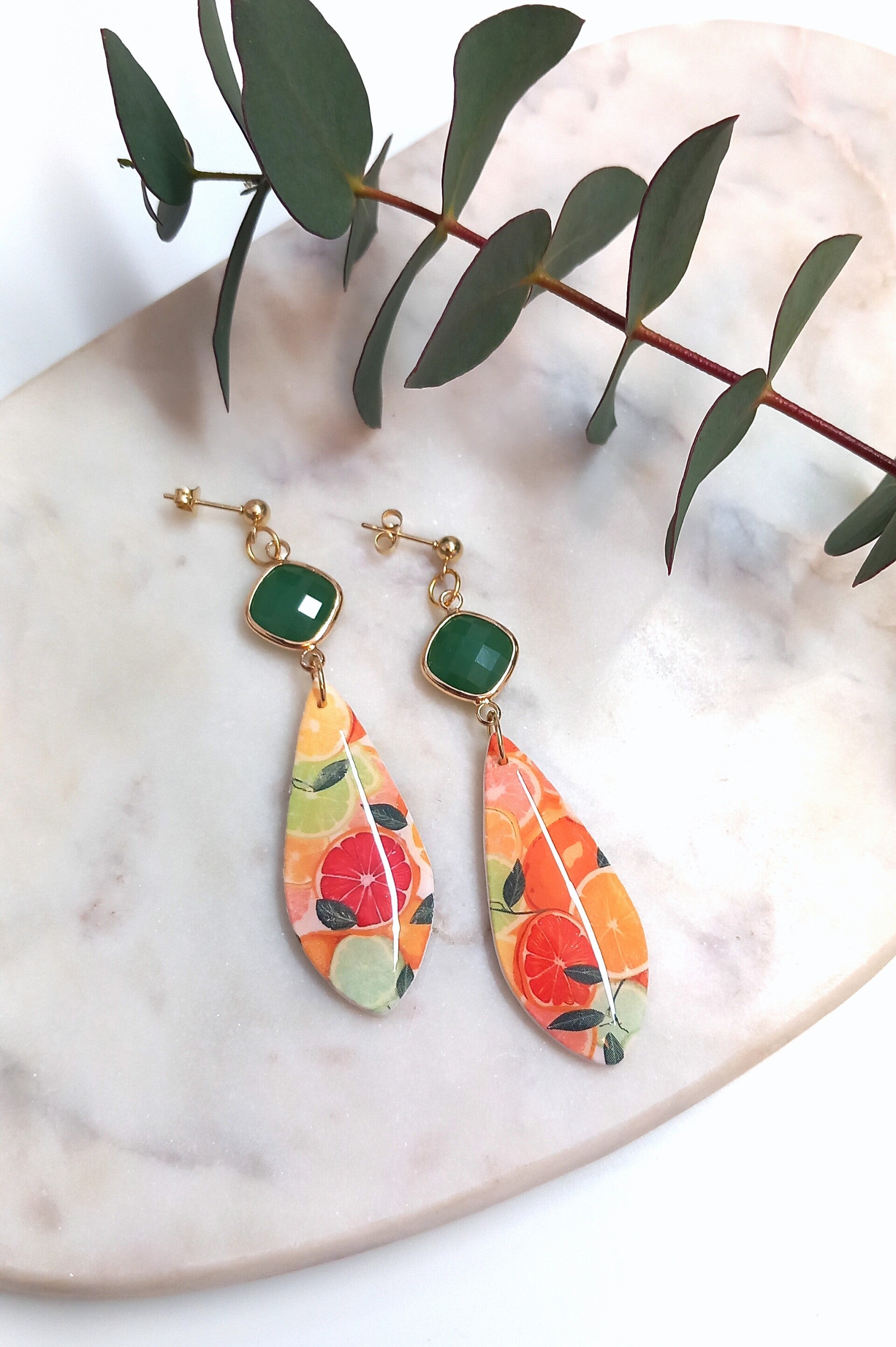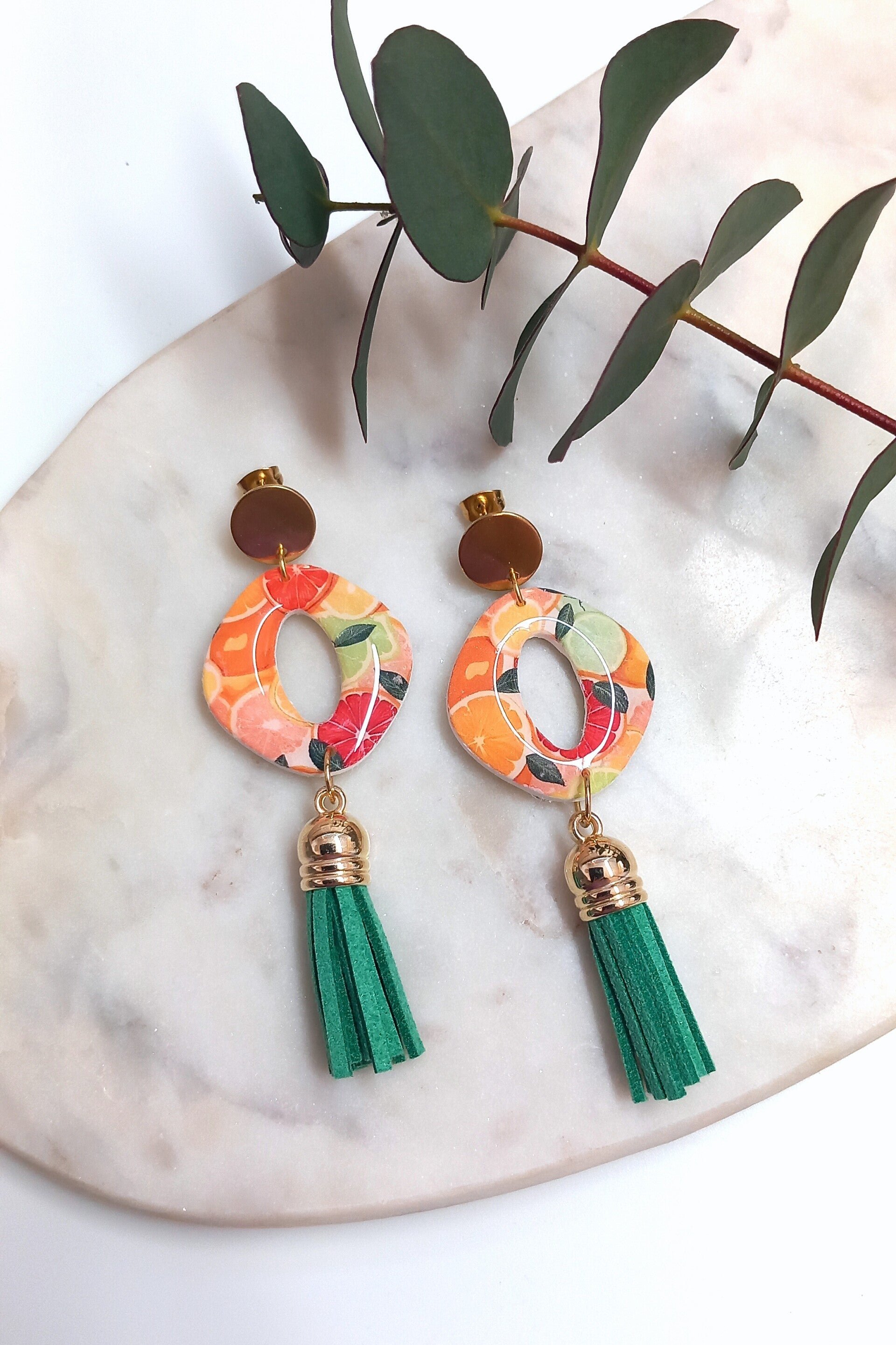 Materiaal: Polymeerklei, RVS oorstekers.