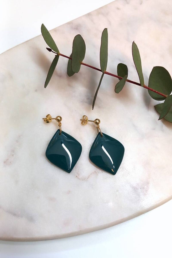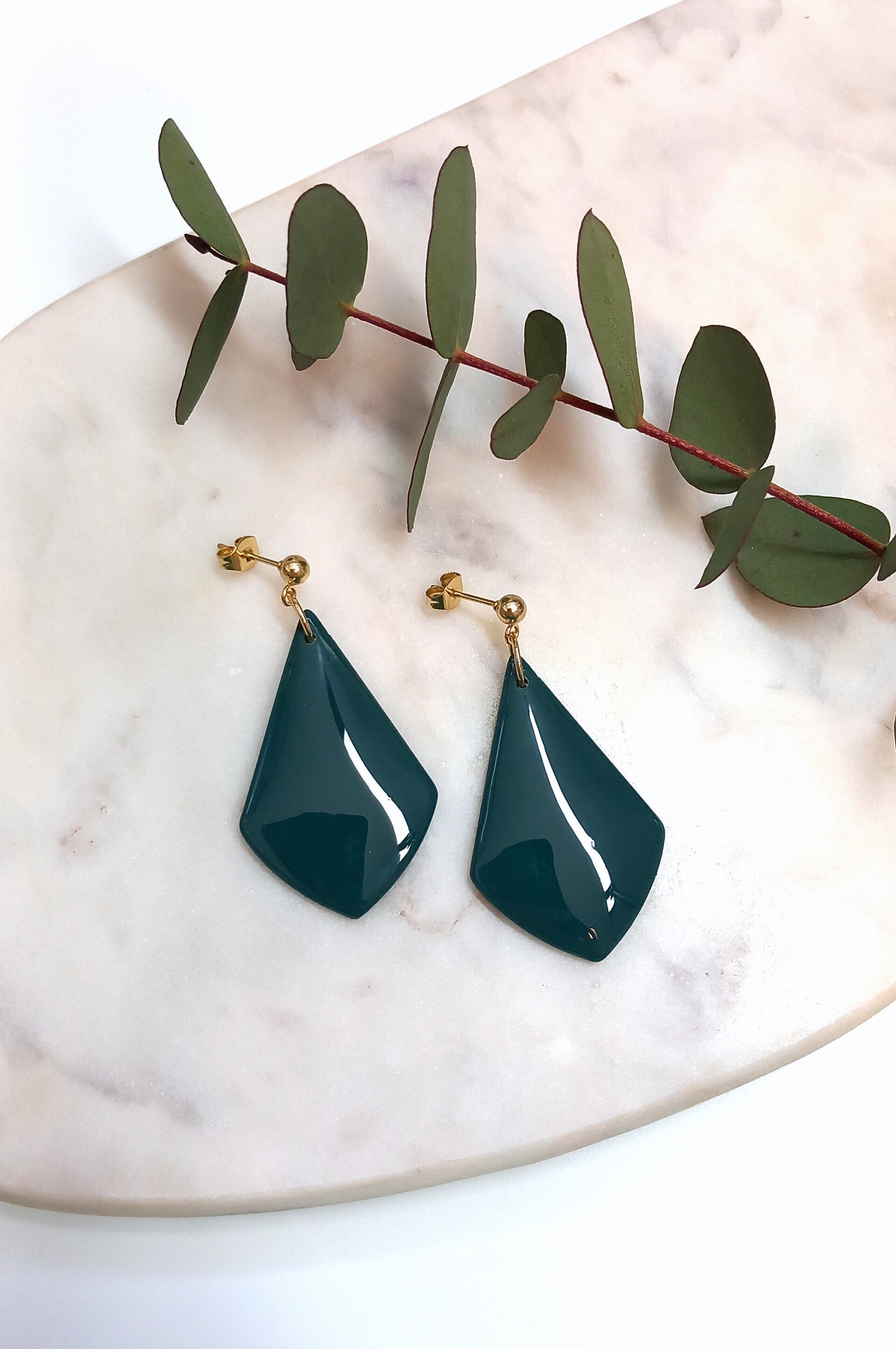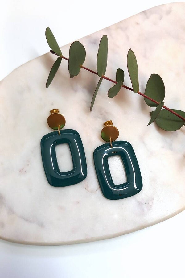 Deze oorbellen zijn voorzien van een resin glanslaag.