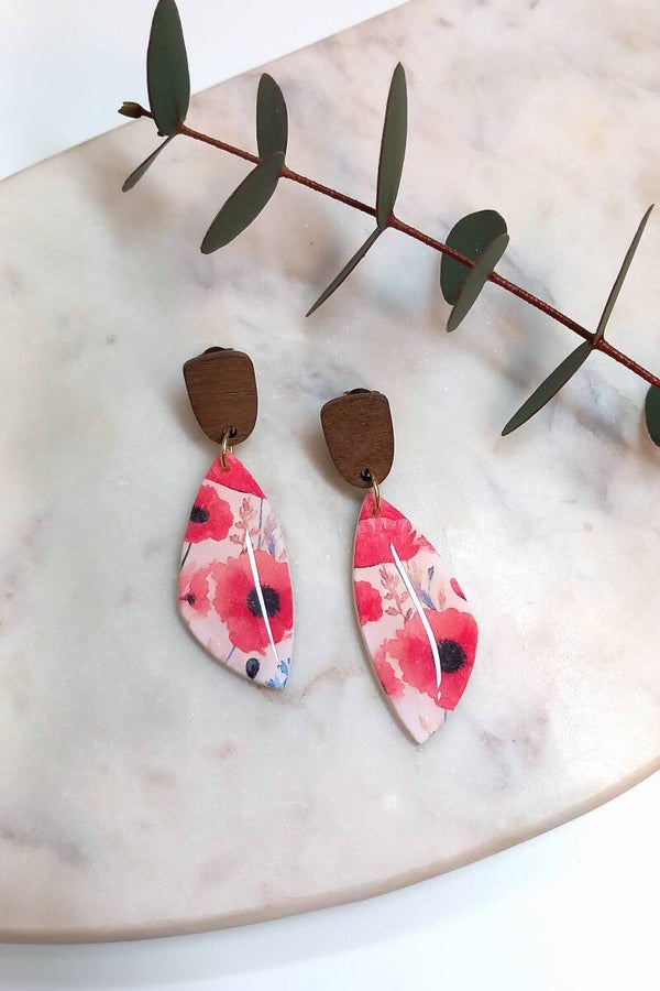 Deze oorbellen hebben een transfer paper print en zijn voorzien van een resin glanslaag.