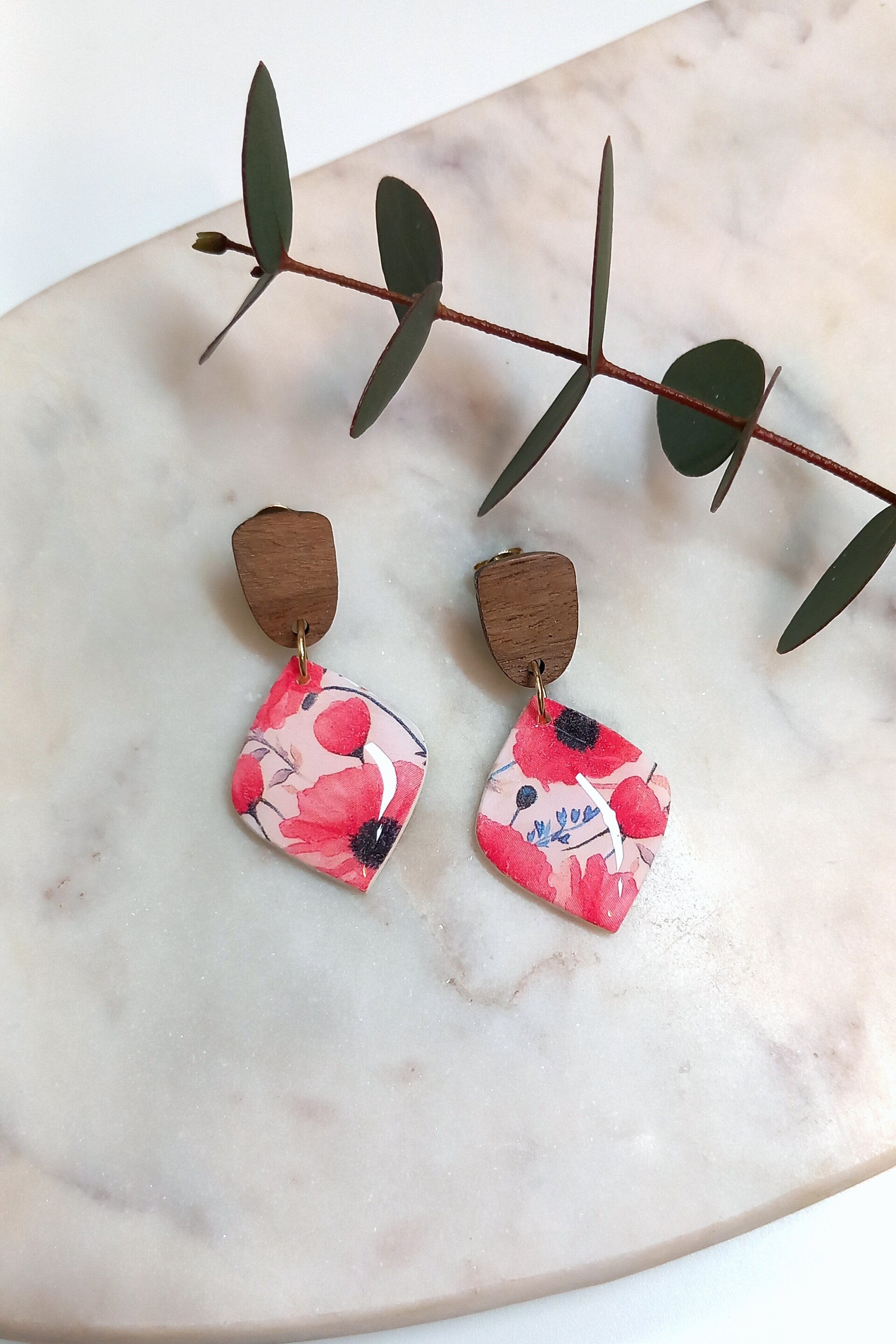 Materiaal: Polymeerklei, RVS oorstekers.