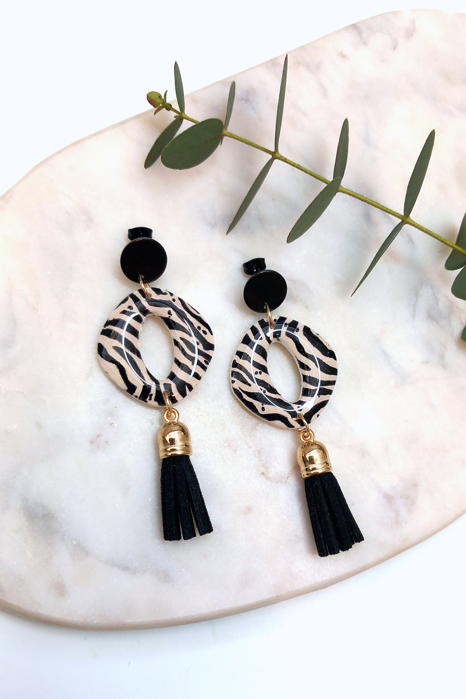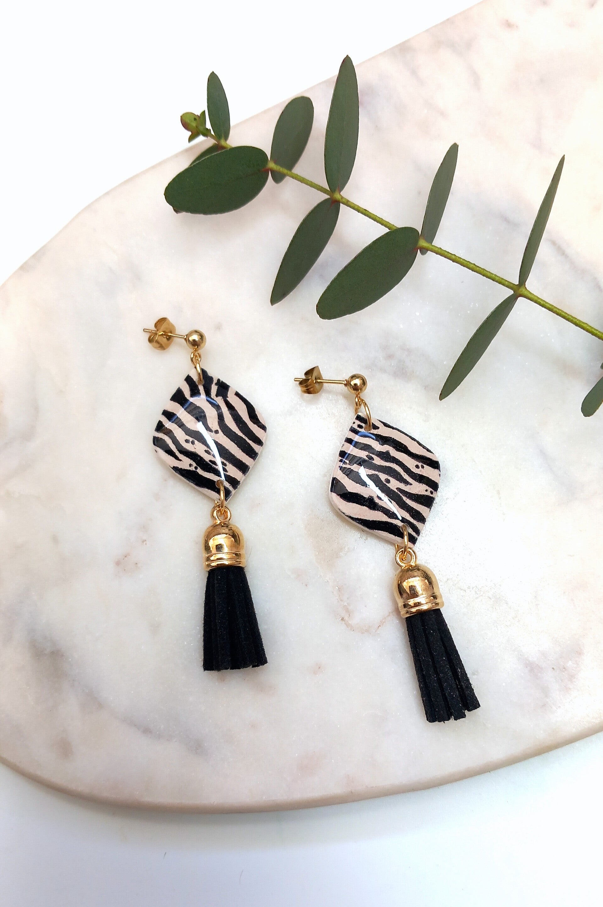 Materiaal: Polymeerklei, RVS oorstekers.