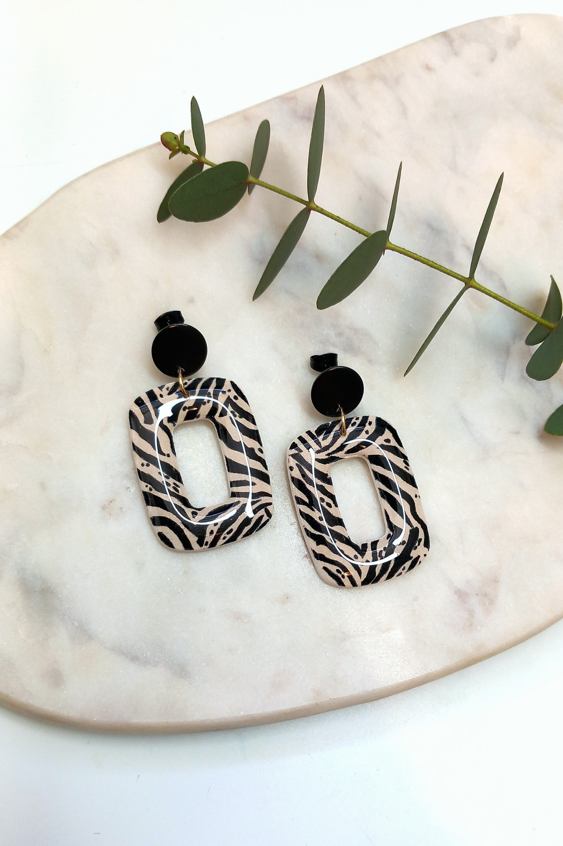Deze oorbellen hebben een transfer paper print en zijn voorzien van een resin glanslaag.