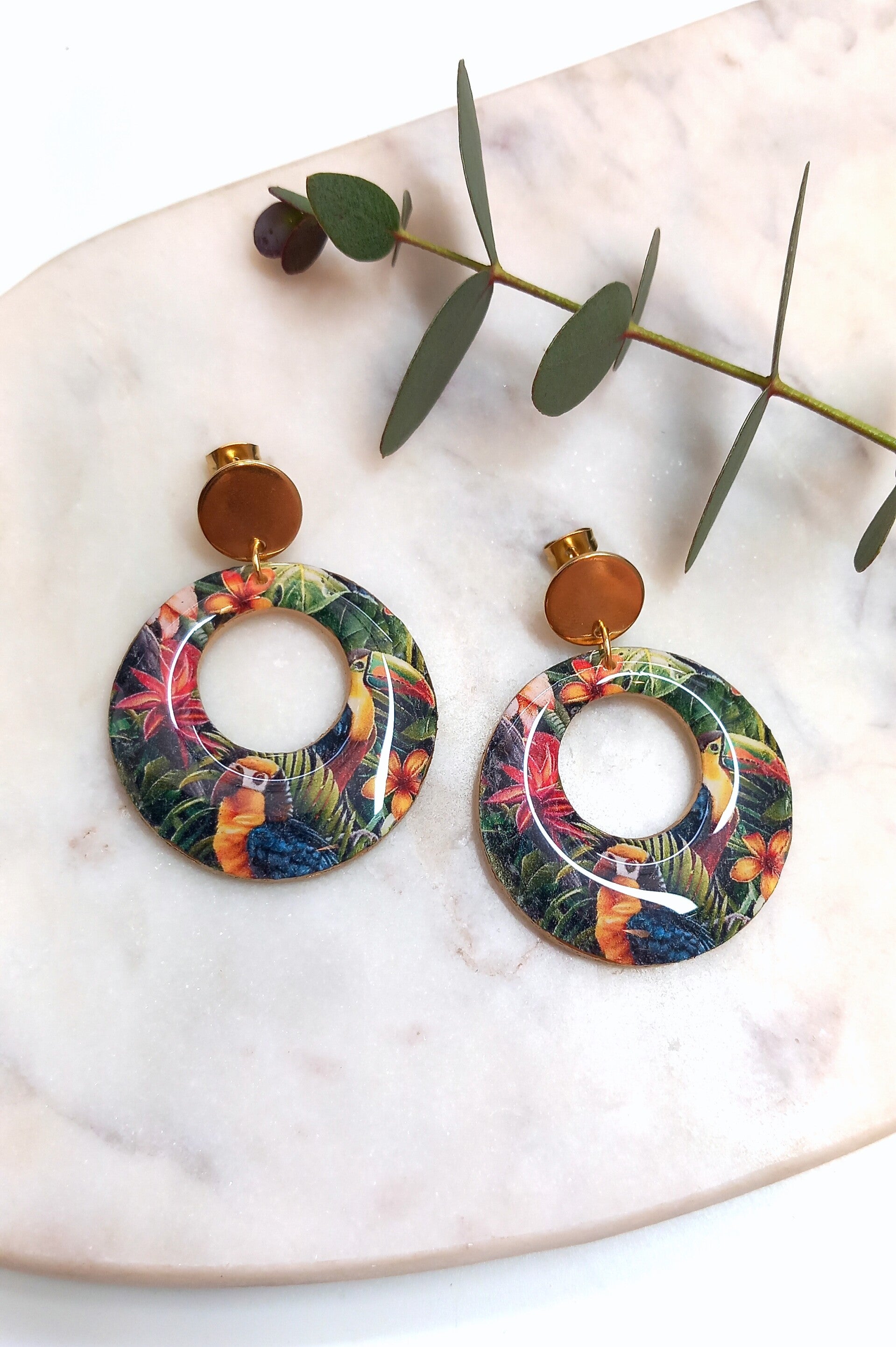 Deze oorbellen hebben een transfer paper print en zijn voorzien van een resin glanslaag.